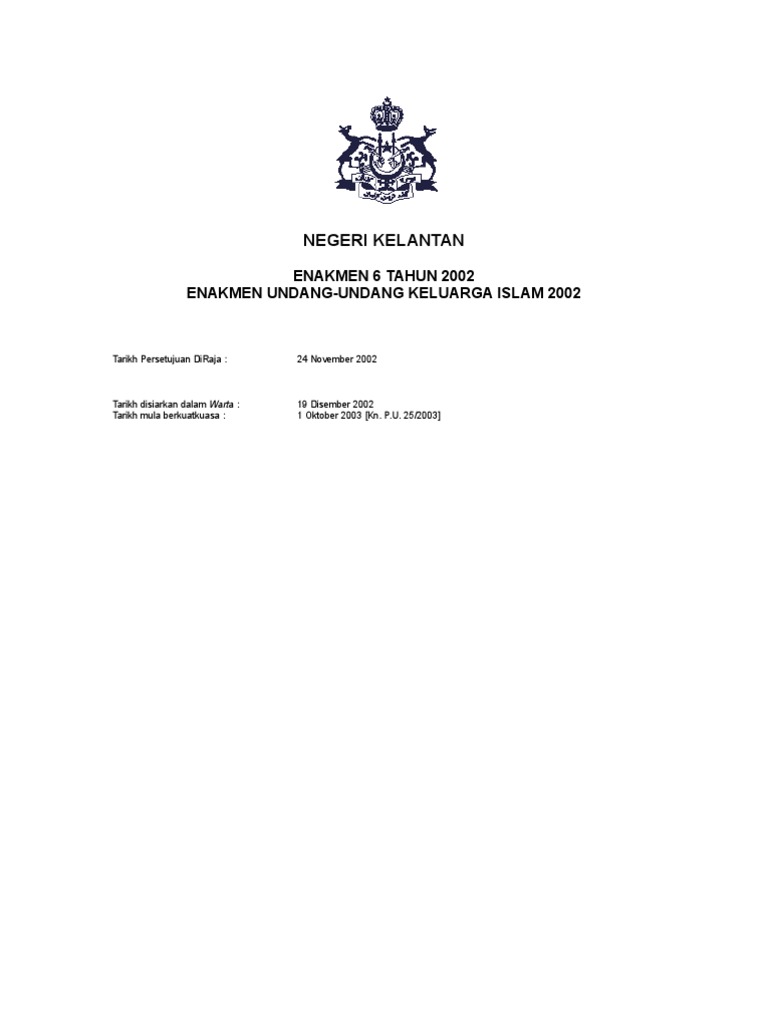 Enakmen Undang-Undang Keluarga Islam / Enakmen undng2 keluarga islam selangoor 2003.. Law, writ, laws, bylaws, lawful, society malay. Contextual translation of enakmen undang undang keluarga islam into english. Enakmen pent'biran undang² keluarga islam perlis bil 2/1992. Enakmen undng2 keluarga islam selangoor 2003. √ islamic base pass quality & checked by advisor, read our quality control guidelance for more info.